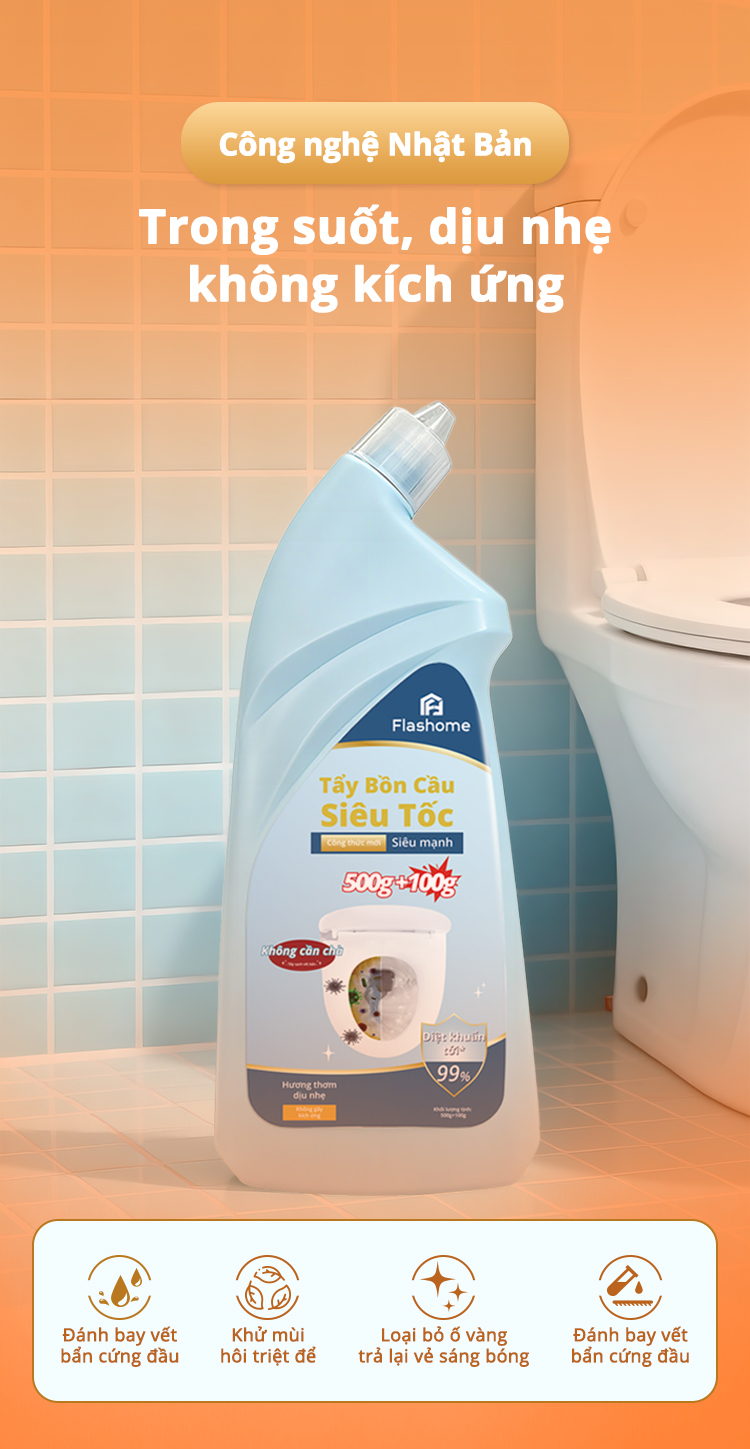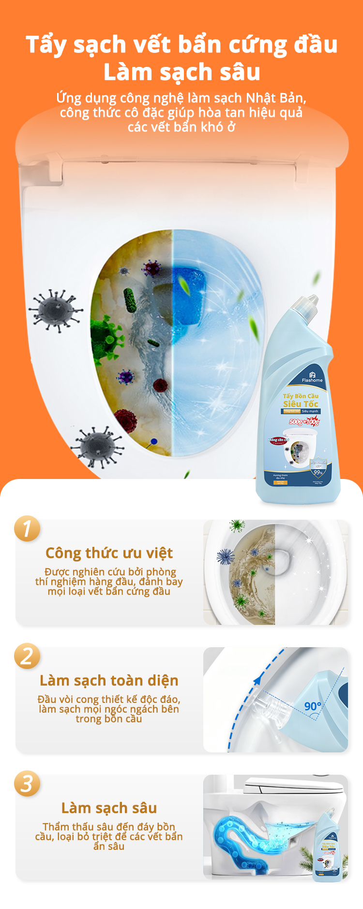 Flashhome Ultra-Fast Toilet Cleaner 600g x 3 | Japanese Tech 99.9% Antibacterial | Deep Stain Removal & Enamel Protection